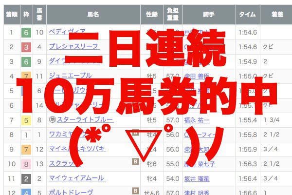 しかし、二日連続で10万馬券的中は、初めてです(((o(*゚▽゚*)o)))